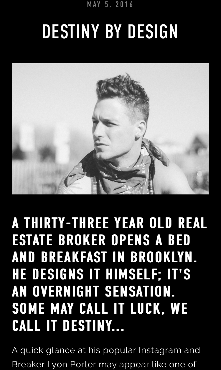I created longform and short form content, as well as writing original articles and press releases that lead to coverage in Entrepreneur, Adweek, Observer, Bloomberg, Yahoo Finance, and Crain's, and decks that lead to sponsorships from Delta, Mailchimp, Dentons, and Shinola.